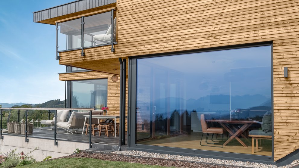 Der bündige Übergang zwischen Flügel und Rahmen sowie die wie eine Fixverglasung wirkende Außenoptik schaffen eine ruhige, harmonische Gesamtfläche. Gleichzeitig ermöglichen die schlanken Rahmen besonders große Glasflächen und damit mehr Tageslicht im Wohnraum.
