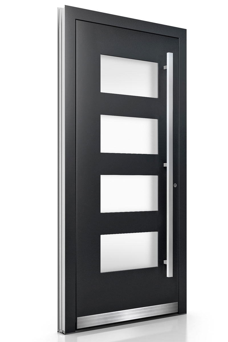 Aluminium-Haustüren können Sie selbstverständlich mit Fingerscanner, Keypad (Codetastatur) oder weiteren Sicherheitssystemen ausstatten. Erfahren Sie dazu mehr unter Einbruchschutz für Türen.