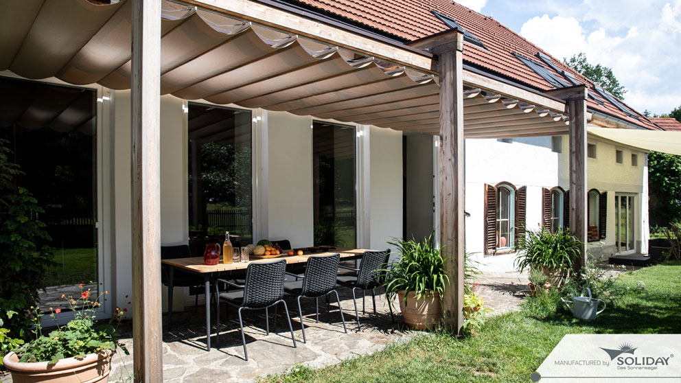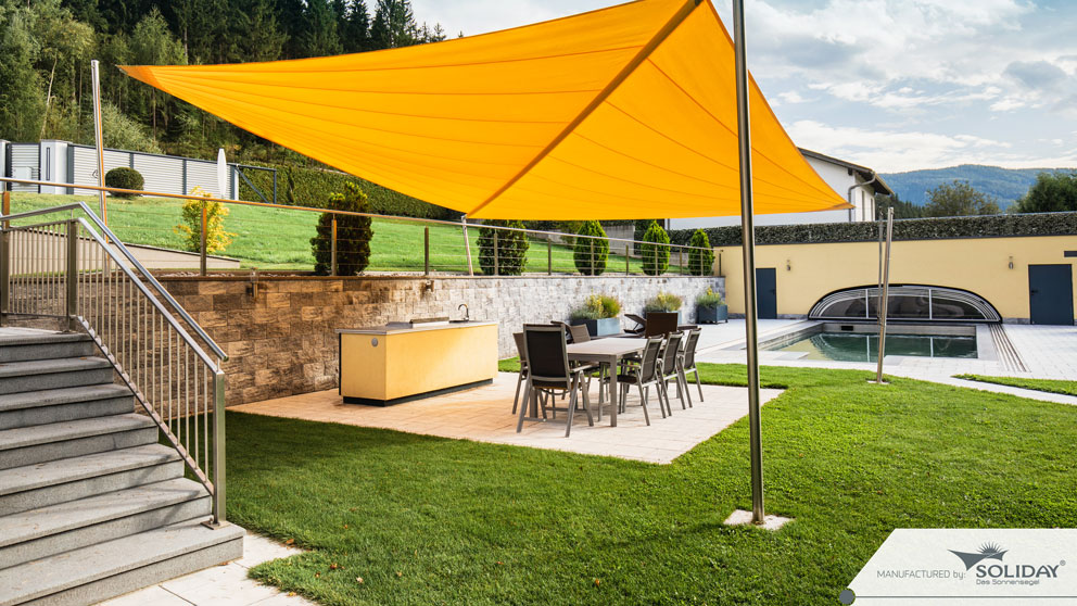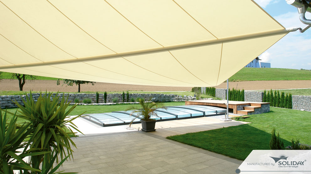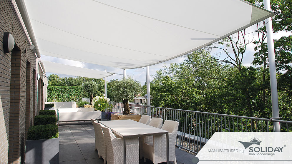 Die effektive und gleichzeitig stilvolle Beschattung Ihres Gartens oder Ihrer Terrasse ist in vielerlei Hinsicht eine anspruchsvolle Aufgabe. Denn Funktionalität, Qualität sowie die Wahl der richtigen Segeltücher und deren Schnittführung verdienen gleichermaßen Beachtung und erfordern wahre Kunst. Die Sonnensegel von SOLIDAY lösen diese Aufgabe mit Bravour, indem sie innovative Technik und puristisches Design meisterhaft miteinander verbinden. Die patentierte Technik und der Fokus auf die wirklich wesentlichen Details der Ausführung machen Ihr Sonnensegel zu einem Wetter- bzw. Sonnenschutz, der perfekt zu Ihrem individuellen Zuhause und der Architektur Ihres Objekts passt.